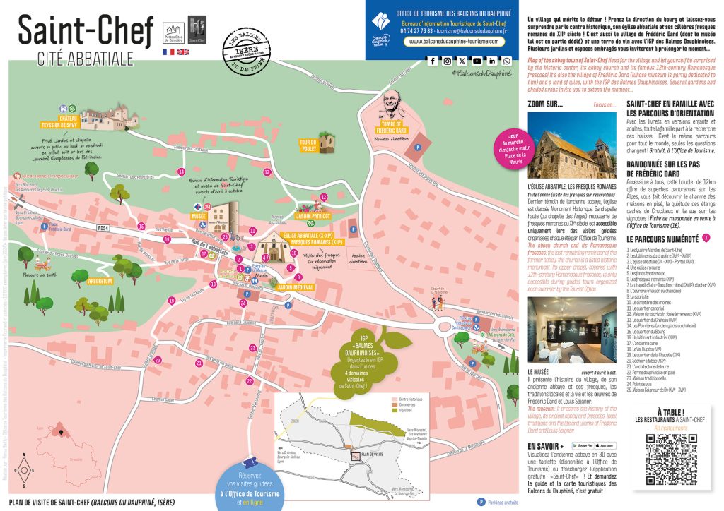 Partez à la découverte de la cité abbatiale de Saint-Chef en suivant le parcours patrimonial agrémenté de panonceaux explicatifs. Plan disponible gratuitement à l’Office de Tourisme.