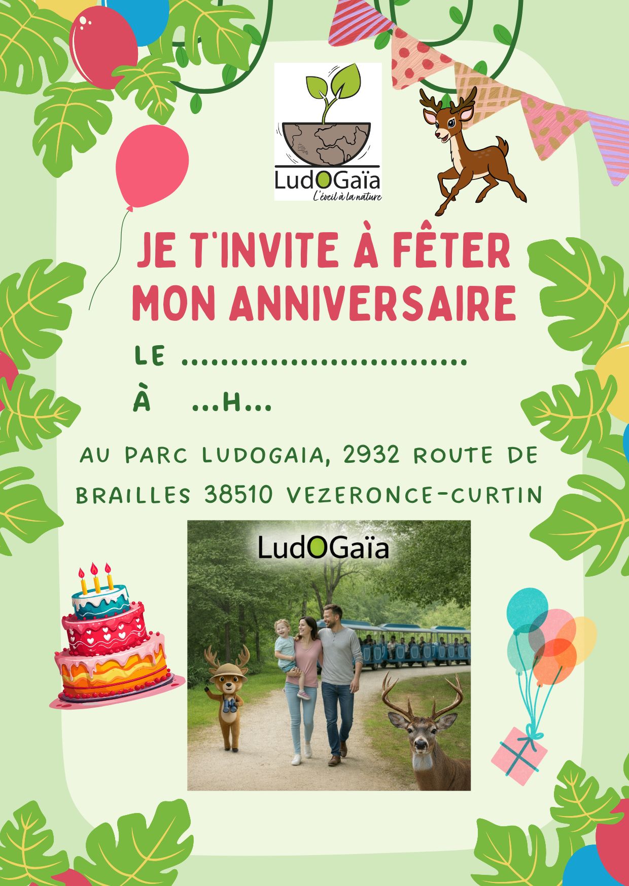 Venez fêter votre anniversaire au parc et partager un moment festif entre amis ! Profitez des jeux, des activités, de la visite, du Tracto’Ludo, d’un goûter d’anniversaire et recevez un cadeau LudOGaïa.