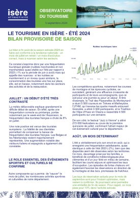 Pour les pros : note de conjoncture Isère été 2024 Télécharger Pour les pros : les chiffres clés du tourisme en Isère Télécharger Visualiser