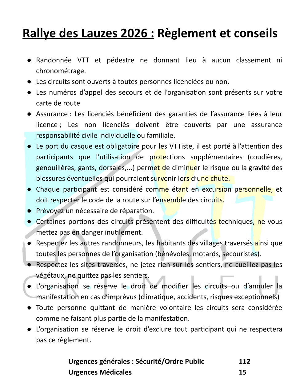 Pour les VTT, merci de privilégier le Parking du gymnase Charles Vacheron et ceux des alentours